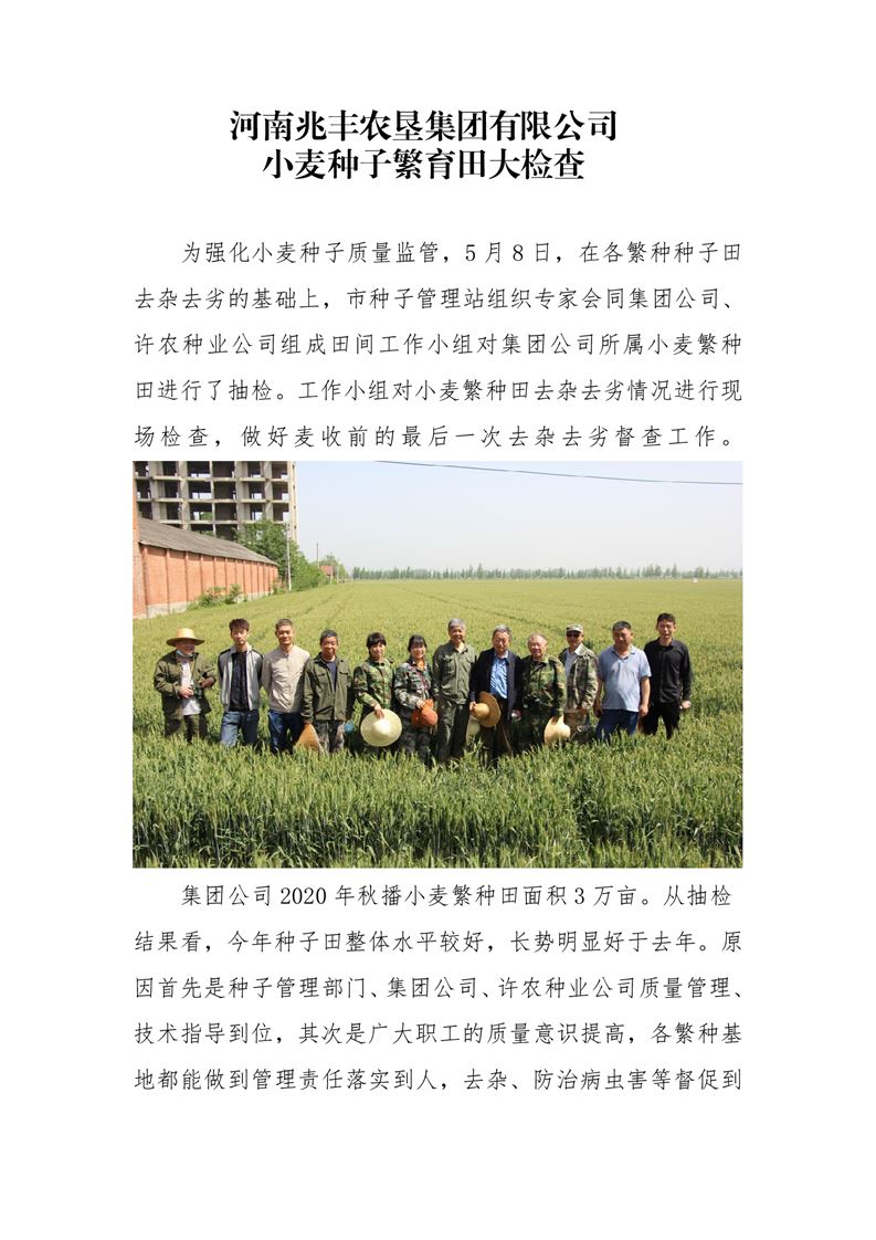 · 河南兆豐農(nóng)墾集團(tuán)有限公司 小麥種子繁育田大檢查