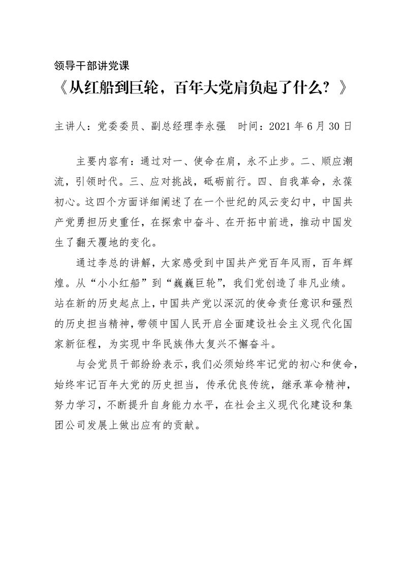 · 【領(lǐng)導(dǎo)干部講黨課】《從紅船到巨輪,百年大黨肩負(fù)起了什么?》——李永強(qiáng)