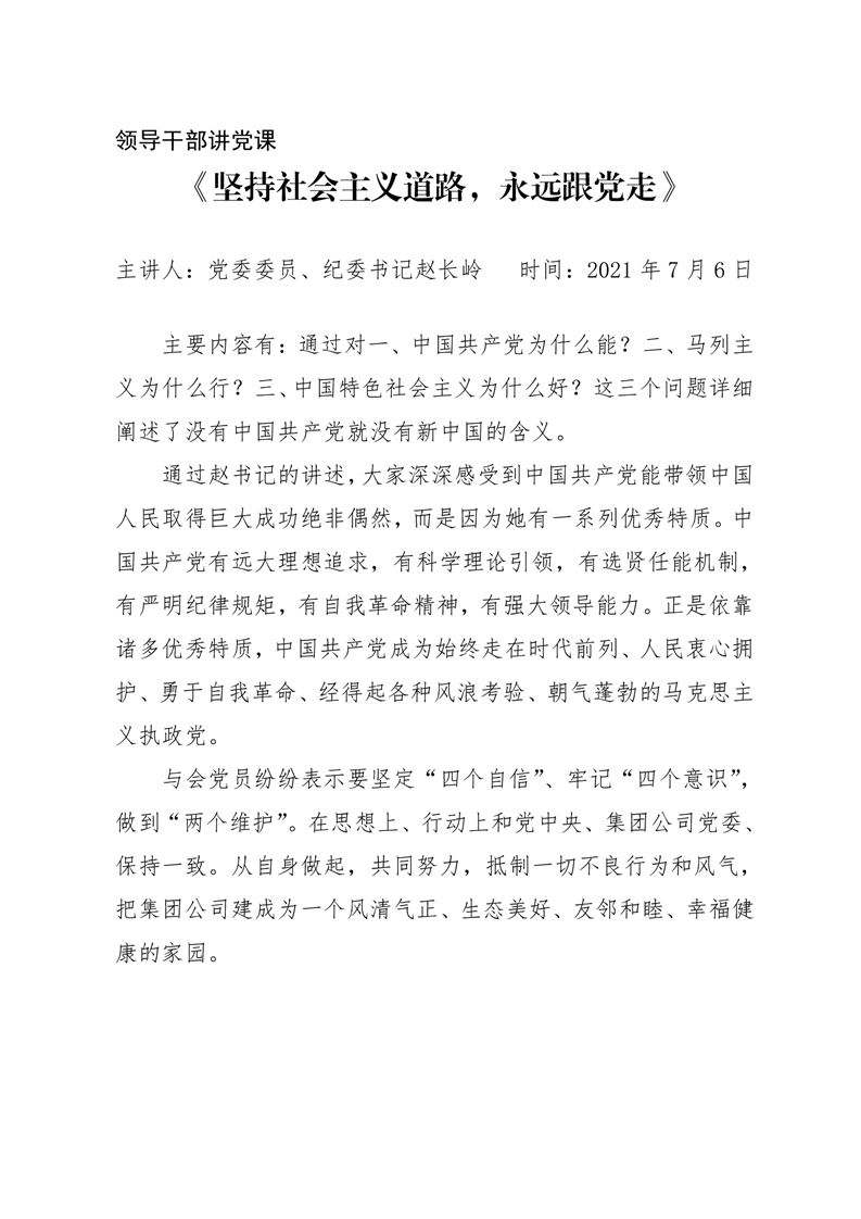 · 【領導干部講黨課】《堅持社會主義道路,永遠跟黨走》——趙長嶺