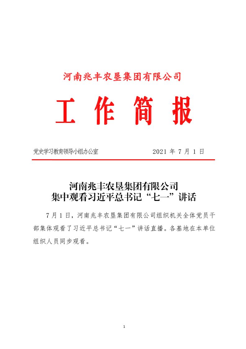 · 河南兆豐農(nóng)墾集團(tuán)有限公司 集中觀看習(xí)近平總書記“七一”講話
