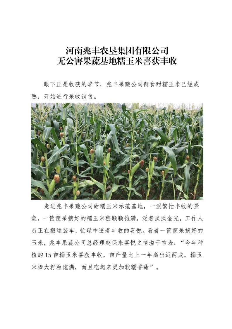 · 河南兆豐農(nóng)墾集團有限公司 無公害果蔬基地糯玉米喜獲豐收