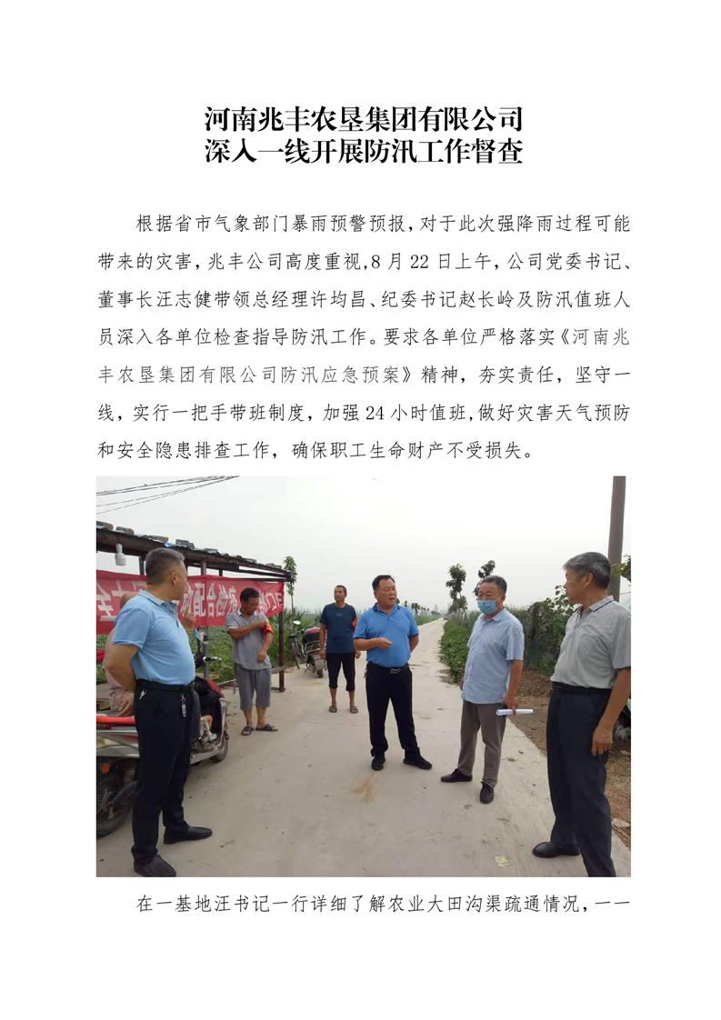 · 河南兆豐農(nóng)墾集團(tuán)有限公司 深入一線開展防汛工作督查