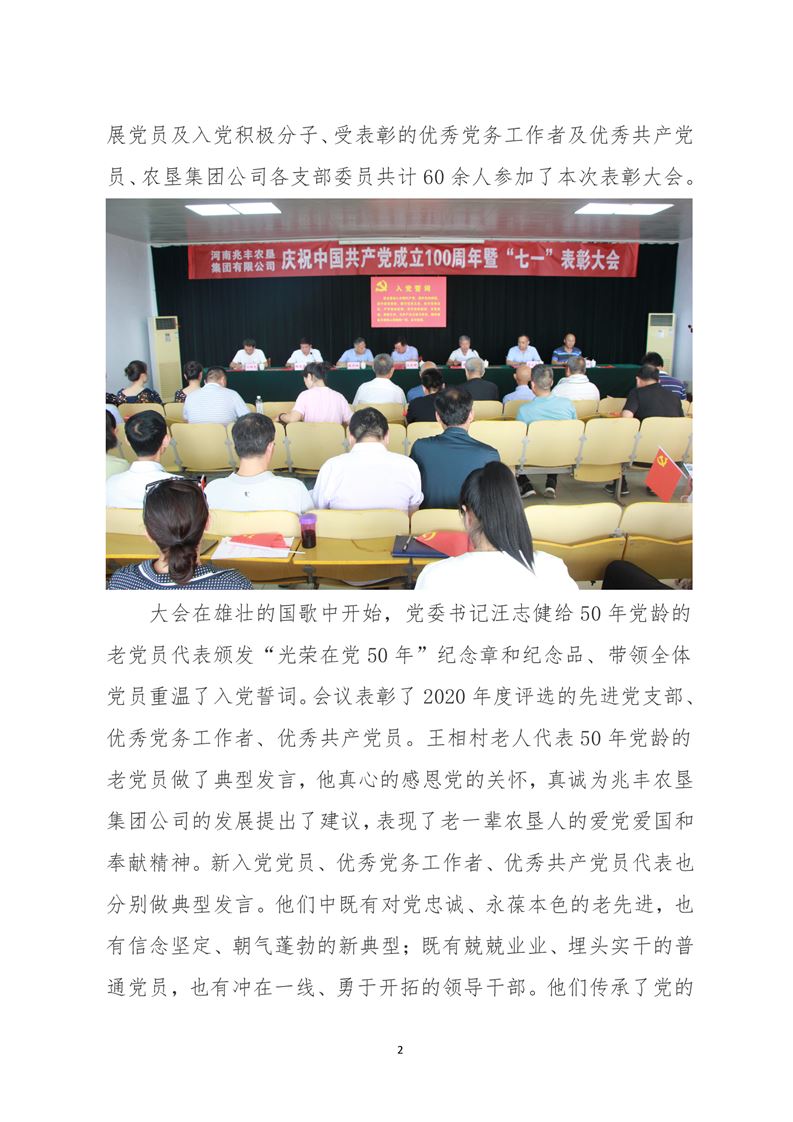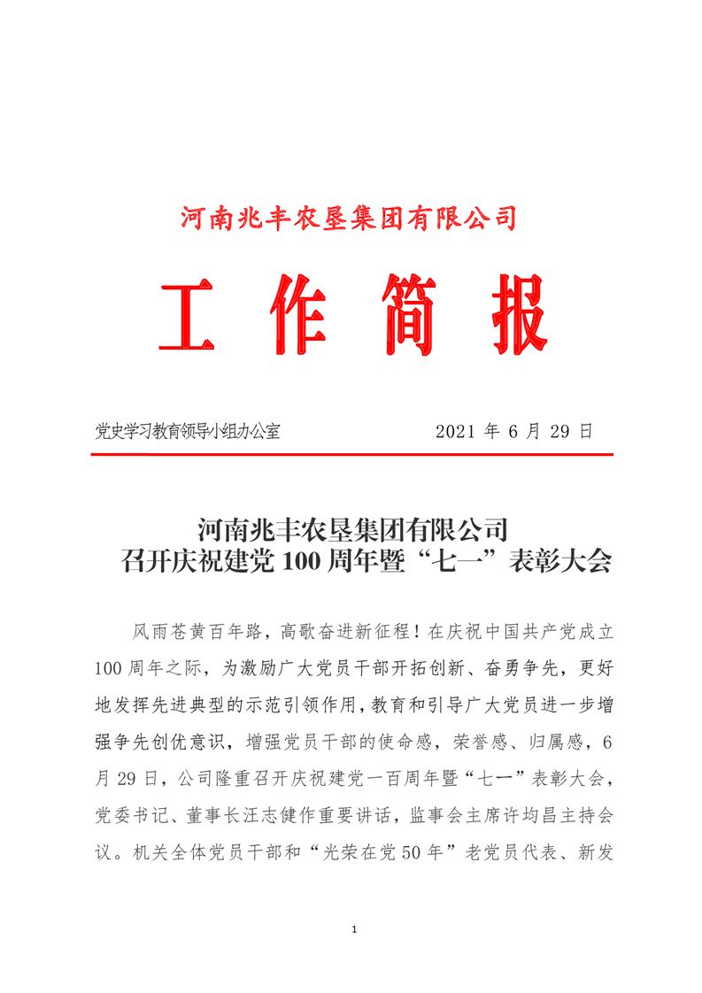 · 河南兆豐農(nóng)墾集團有限公司 召開慶祝建黨100周年暨“七一”表彰大會
