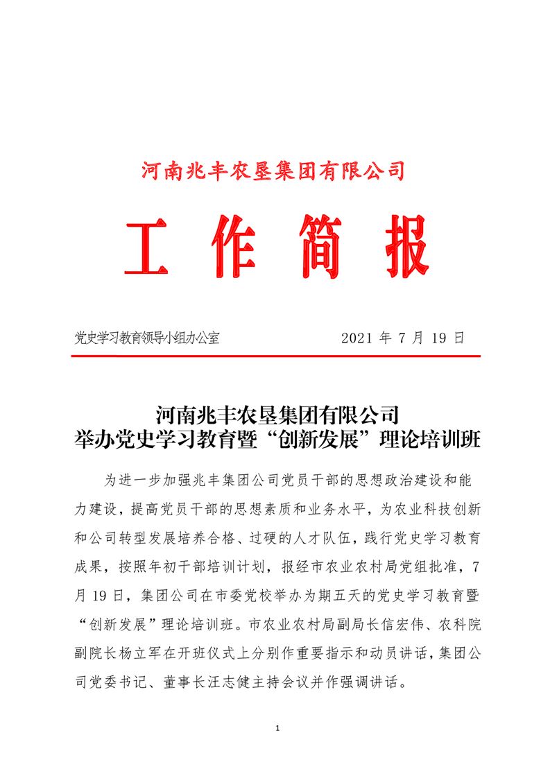 · 河南兆豐農墾集團有限公司 舉辦黨史學習教育暨“創(chuàng)新發(fā)展”理論培訓班