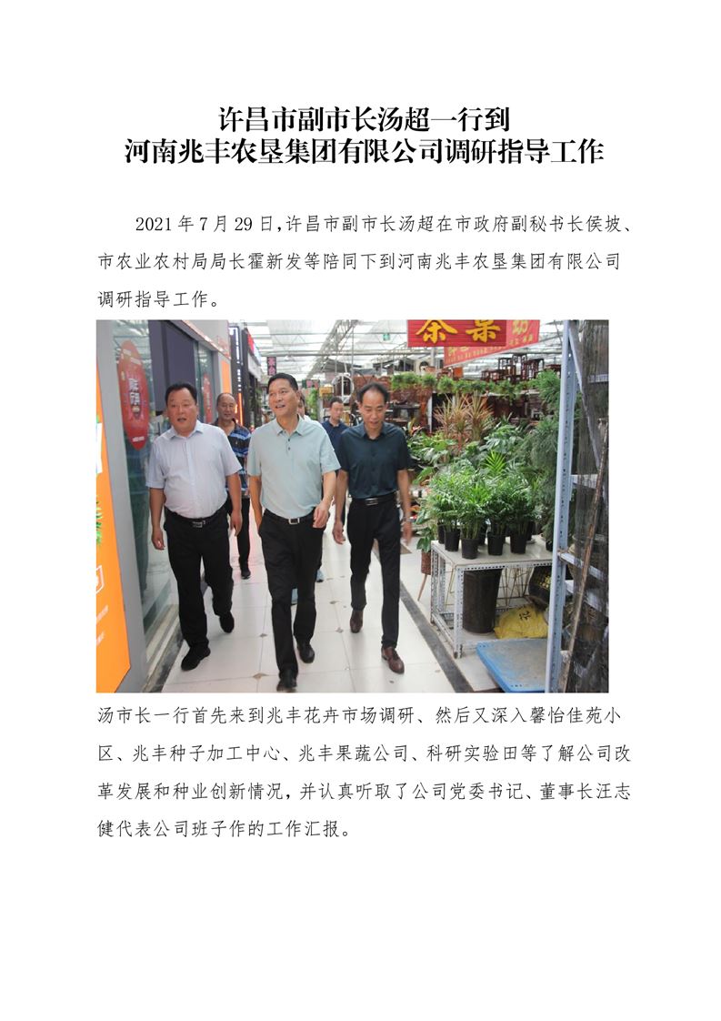 · 許昌市副市長(zhǎng)湯超一行到河南兆豐農(nóng)墾集團(tuán)有限公司 調(diào)研指導(dǎo)工作