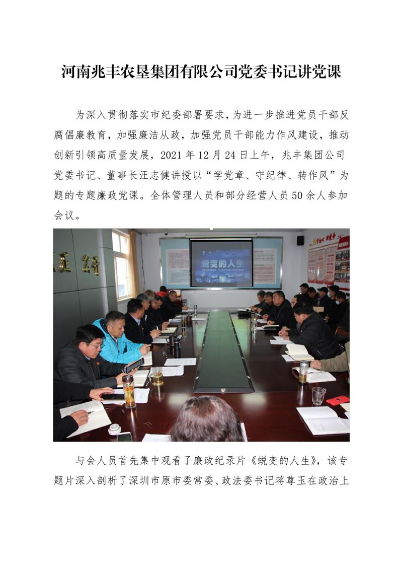 · 河南兆豐農(nóng)墾集團(tuán)有限公司 黨委書(shū)記講黨課