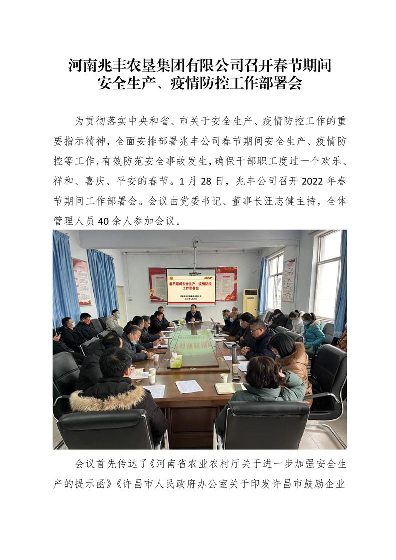 · 河南兆豐農(nóng)墾集團有限公司 召開春節(jié)期間 安全生產(chǎn)、疫情防控工作部署會