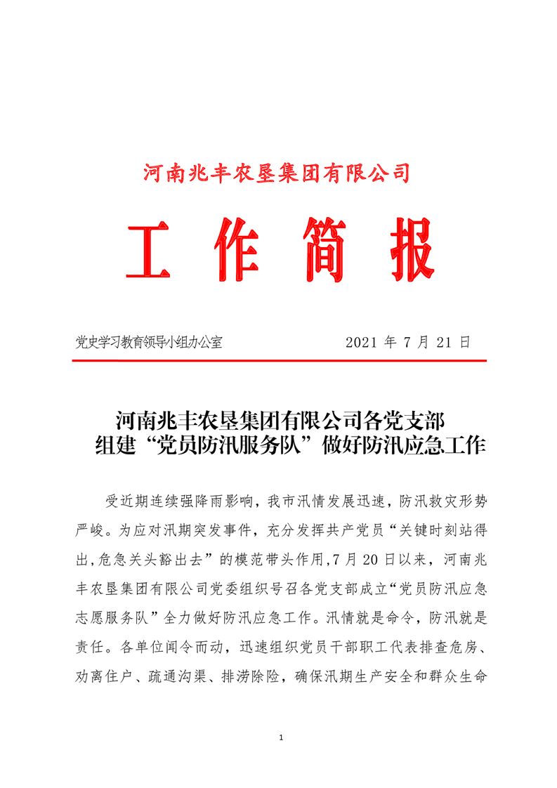 · 【我為職工辦實(shí)事】河南兆豐農(nóng)墾集團(tuán)有限公司各黨支部 組建“黨員防汛服務(wù)隊(duì)”做好防汛應(yīng)急工作